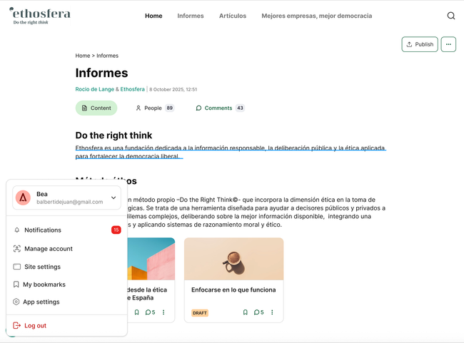 6.1 User clicks the profile icon. A modal with options open and there is one called "manage account". When user clicks opens the Vault screen on a new screen.